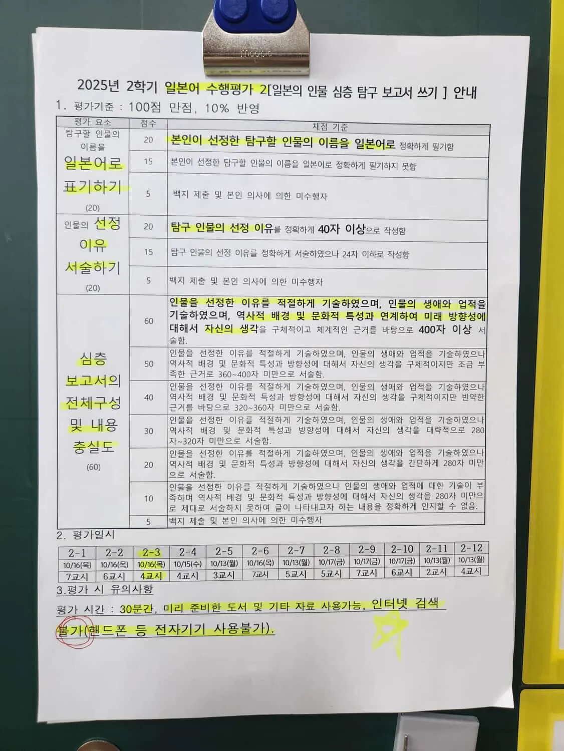 : 본인이 선정한 탐구할 인물의 이름을 일본어로 정확하게 필기함